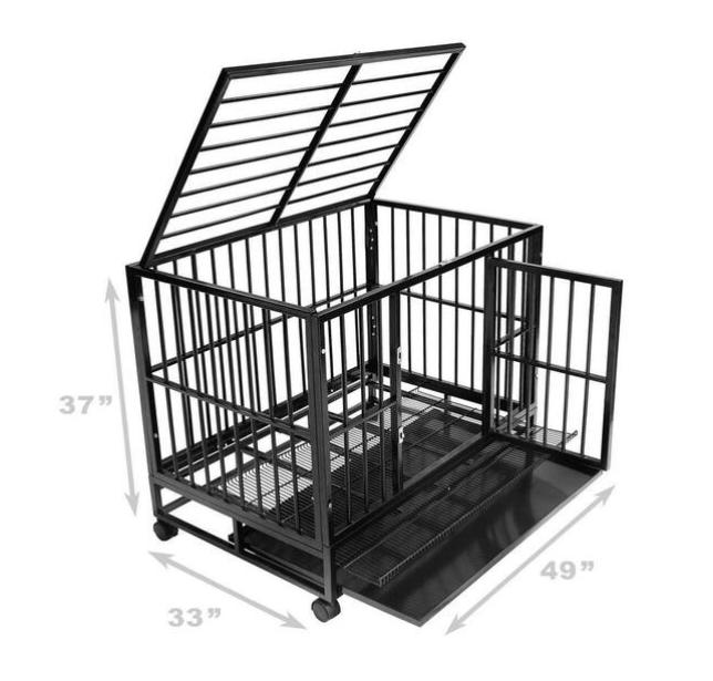 편리한 이중 입구 디자인: 이 고강도 전문 애완동물 케이지 장치는 특히 강아지, 성장하는 애완동물 및 고에너지 품종에 적합하며 상단 및 측면 액세스 포인트를 모두 갖추고 있습니다. 전면 도어에는 이중 슬라이딩 래치가 포함되어 있으며 상단 액세스 포인트에는 단일 래치가 있습니다.