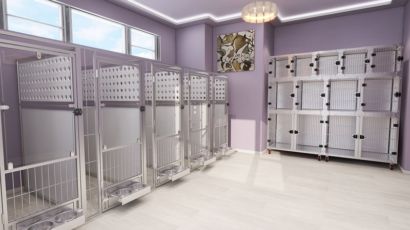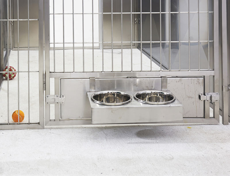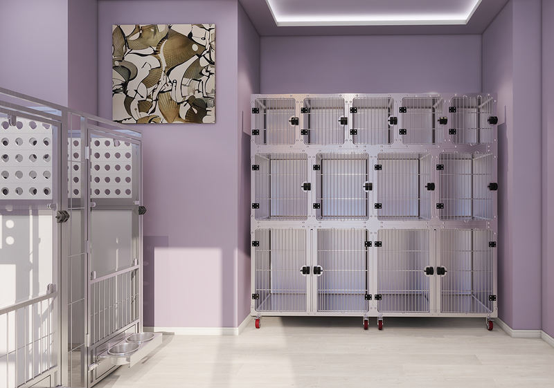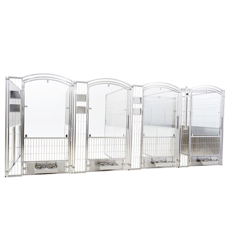 다목적 동물 탑승 및 검역 케이지는 견고하고 안전 강화 유리를 사용하여 매우 긴 사용 수명을 보장하는 동시에 동물 긁힘을 완전히 방지합니다. 완전히 용접된 케이지 본체는 모서리가 둥글게 되어 있어 청소가 쉽고 위생적으로 유지됩니다. 케이지 유닛은 기존 창문 바로 앞에 배치할 수 있어 강아지 판매 및 입양 장소에 특히 적합합니다.